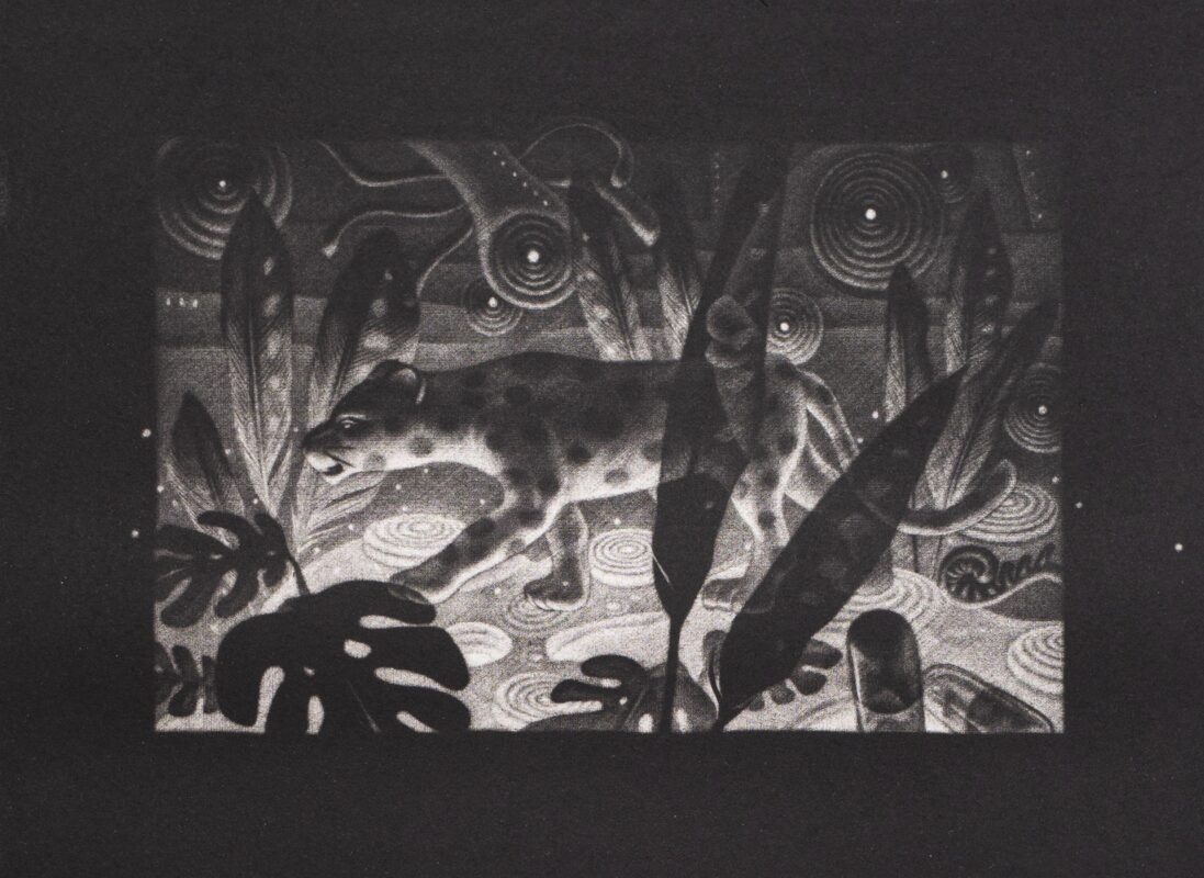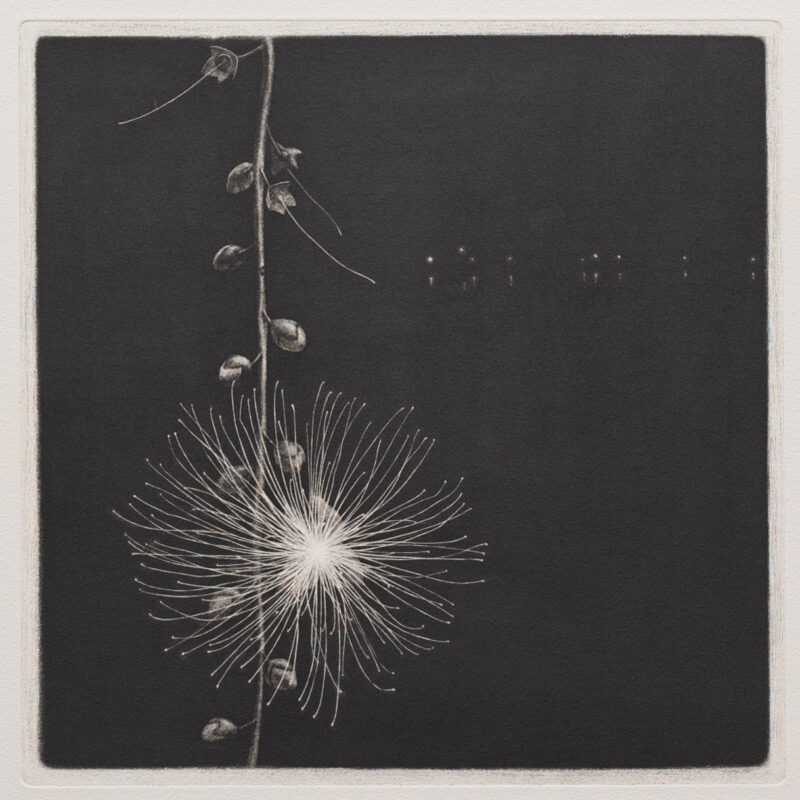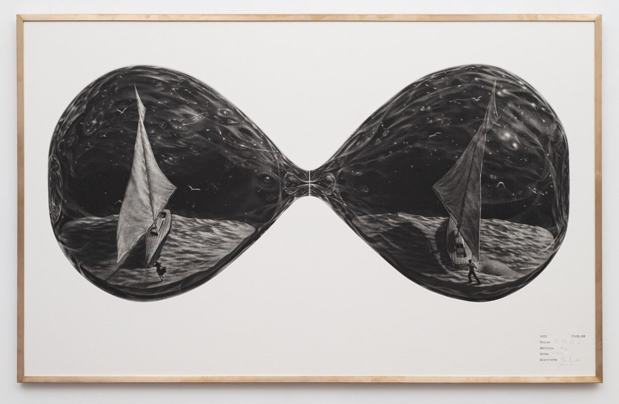 從繪畫、裝置藝術到版畫,從極精細的美柔汀到無法重來的單版複刻,在數十年不斷磨練的純青技巧承載下,媒材成為了臣服於理念的工具,任其揮灑成不拘於單一風格的多樣性創作。在形式之外,更珍貴的是,楊忠銘的藝術,不是喧囂地證明自己的存在,而是一種慢慢流進觀者內心深處的共鳴。